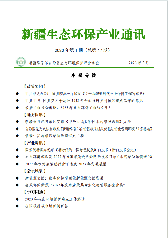 2023年新疆生態(tài)環(huán)保產(chǎn)業(yè)通訊(第十七期)