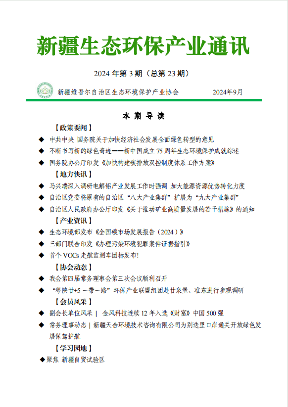 2024年第三季度新疆生態(tài)環(huán)保產(chǎn)業(yè)通訊(第二十三期)