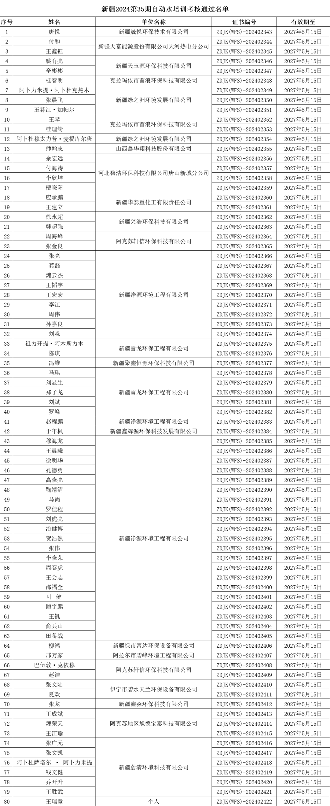 2024年第35期污廢水連續(xù)自動監(jiān)控系統(tǒng)運(yùn)行人員培訓(xùn)班考核通過名單公布